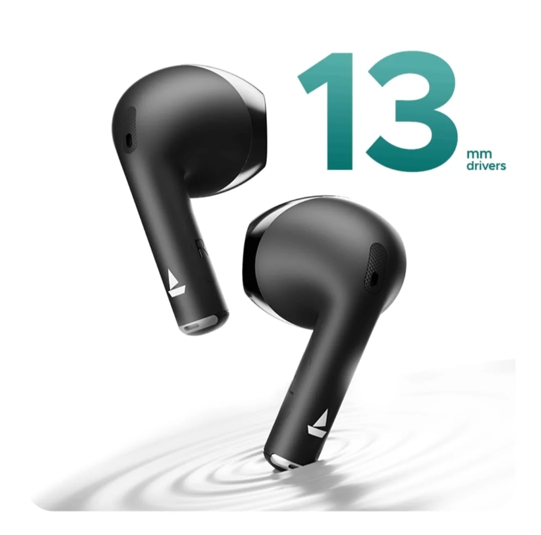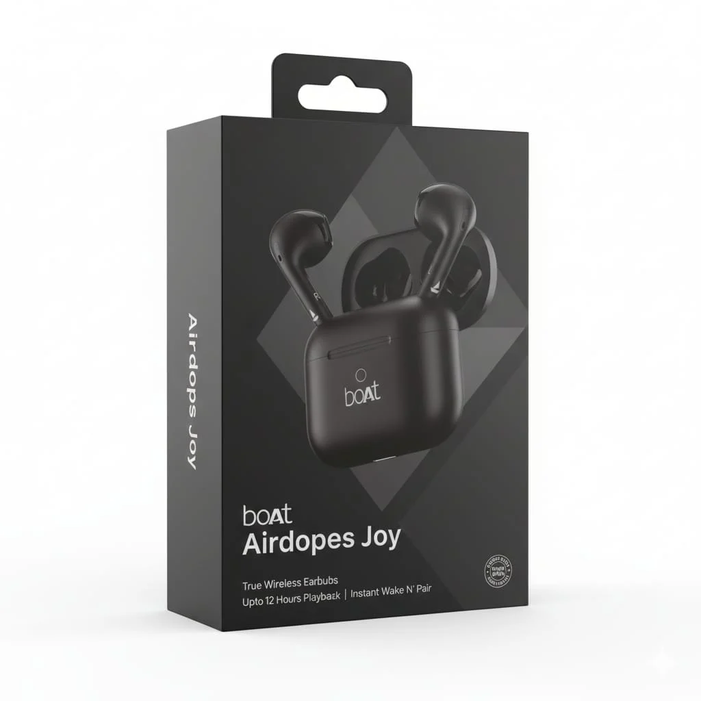 The boAt Airdopes Joy are lightweight and powerful true-wireless earbuds designed for music, calls, and gaming. Powered by 13 mm drivers with boAt Signature Sound, they deliver deep bass and clear vocals. With up to 35 hours of total playback, ASAP Charge, ENx noise reduction, and BEAST Gaming Mode, these earbuds give a smooth and immersive experience. The IPX5 rating makes them ideal for gym and daily use.