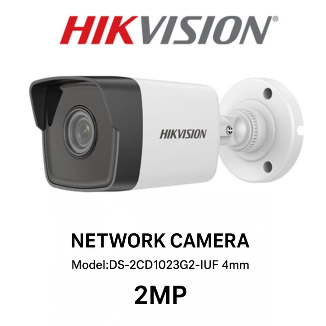 The Hikvision DS-2CD1023G2-IUF is a 2MP EXIR fixed mini-bullet network camera designed for high-quality surveillance with advanced video compression and reliable outdoor performance. It supports H.265+ for reduced bandwidth usage, human detection for smart monitoring, and EXIR infrared technology for clear night vision. Ideal for homes, offices, and commercial security setups.