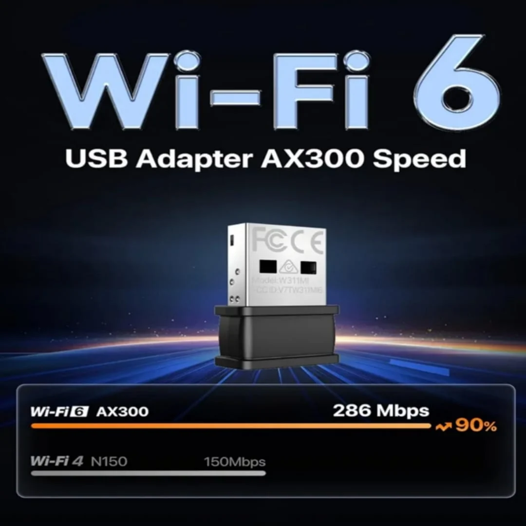 The Tenda AX300 Wi-Fi 6 Wireless Nano USB Adapter is a compact and high-speed USB adapter designed to upgrade your desktop or laptop to the latest Wi-Fi 6 standard. It delivers faster speeds, improved stability, and better performance in crowded networks. Its nano-size design allows it to stay plugged in without obstruction, making it ideal for everyday use at home or office.